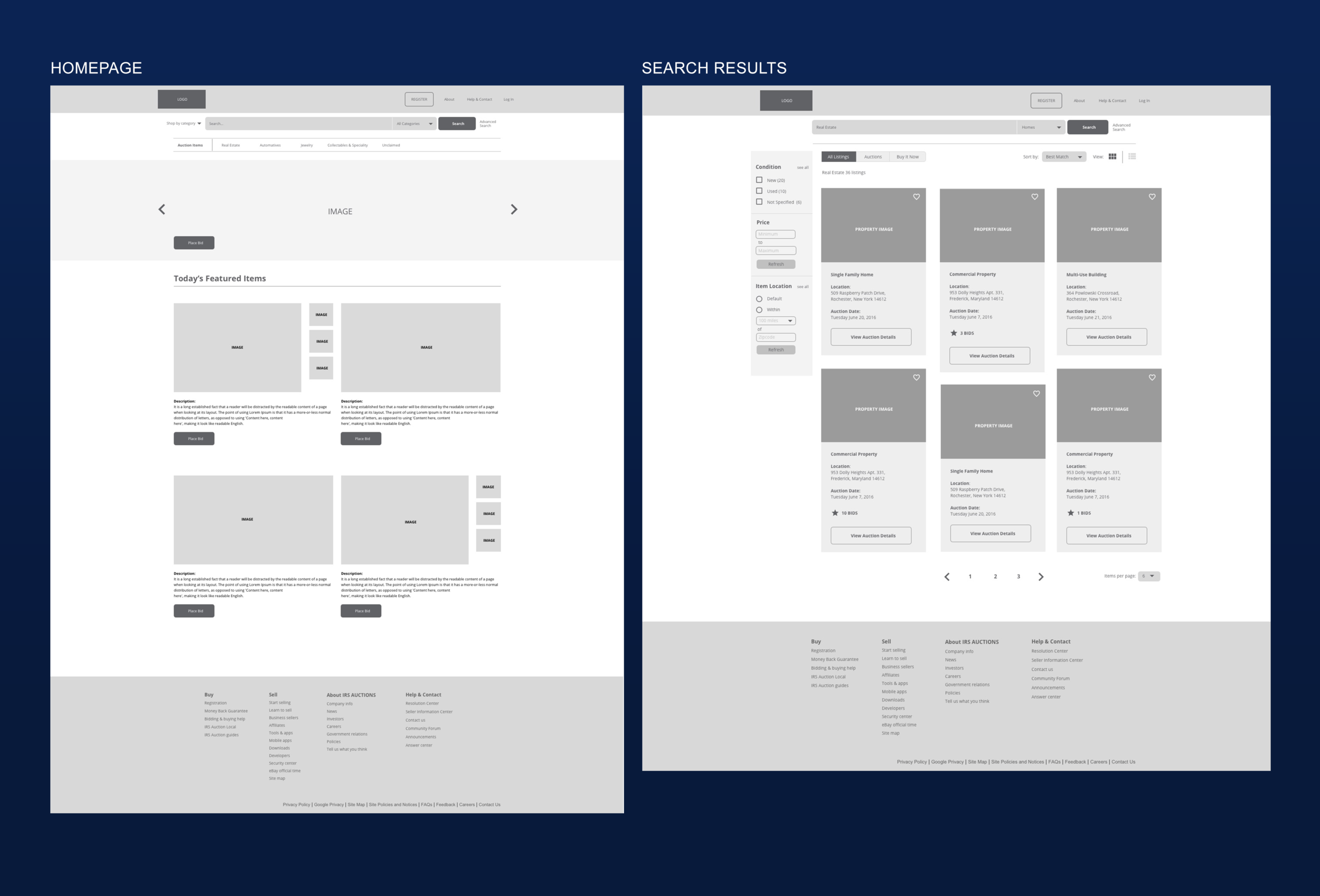 I was the Lead UX Designer on a small team of 5 consultants to research, analyze, design and rapid prototype IRS Auctions. We dramatically simplified the user experience, focusing on core interactions of purchasing, simplified navigation and search.